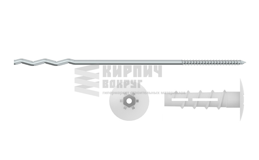 Металлическая гибкая связь TERMOCLIP МГС 3 MS из распорно-связующего элемента с винтовой накаткой и полиамидной шнекообразной анкерной гильзы АГ МS.